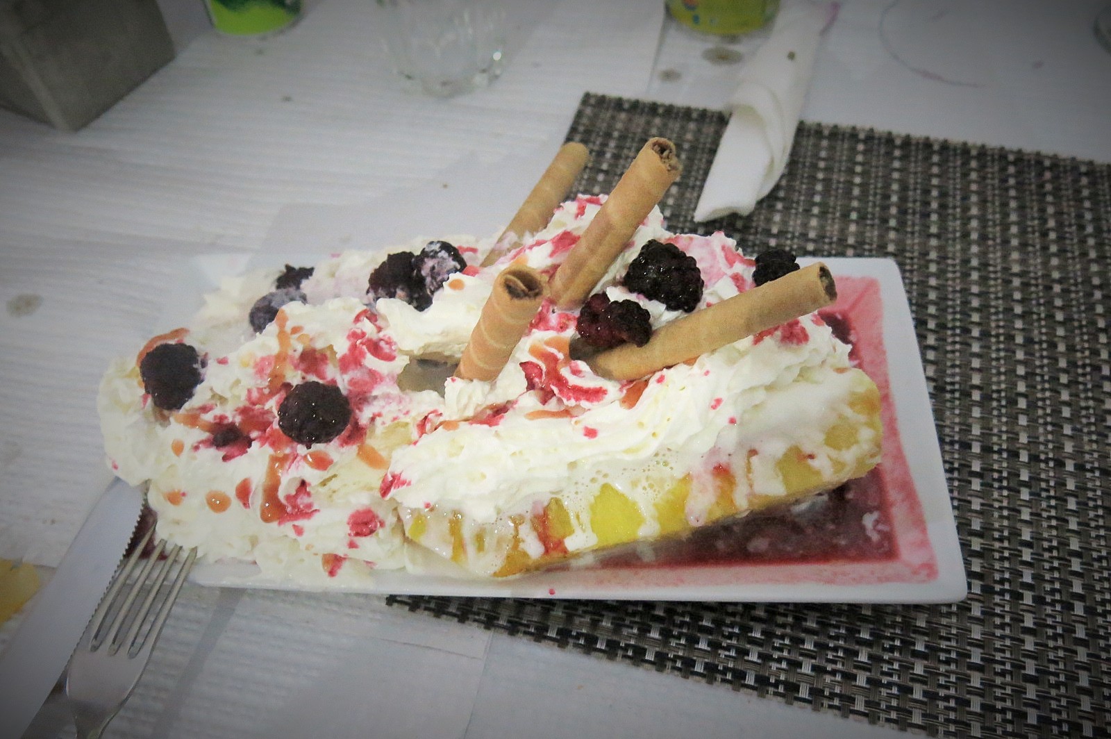 Ananás coberto de chantily, gelado e amoras