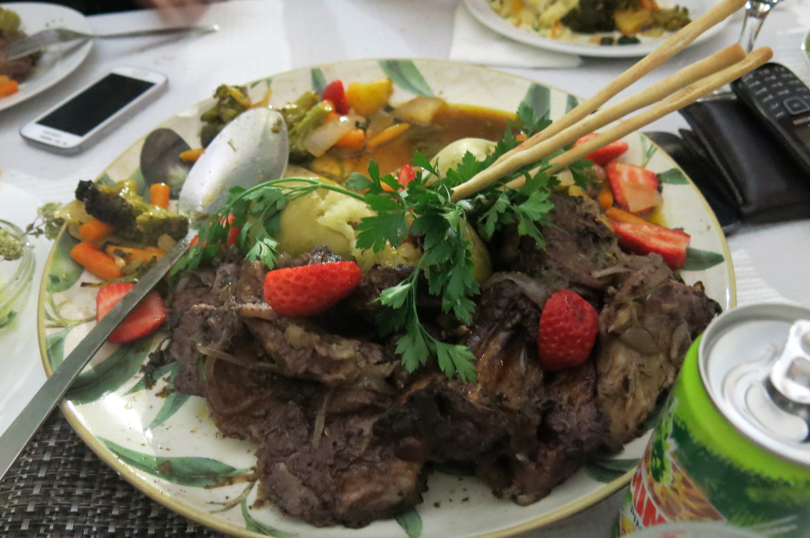 Entrecosto com legumes e frutas