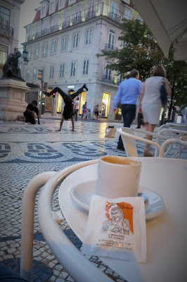 Café "A Brasileira" com dois jovens talentosos a dançarem na rua